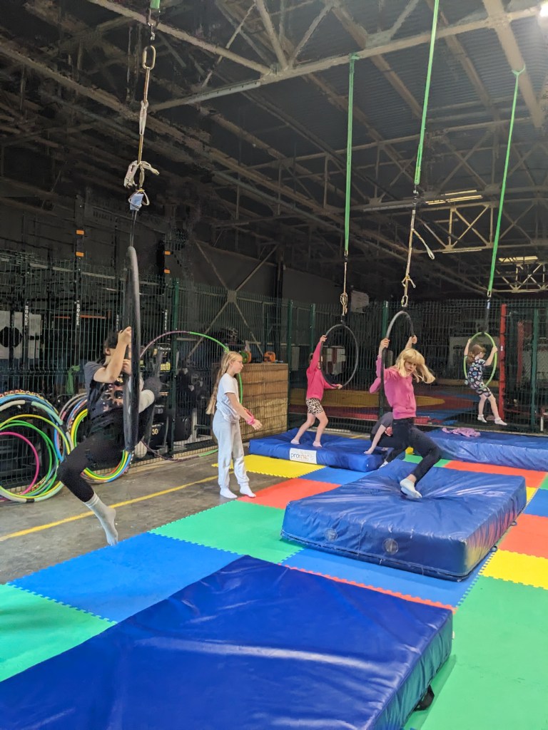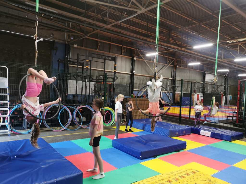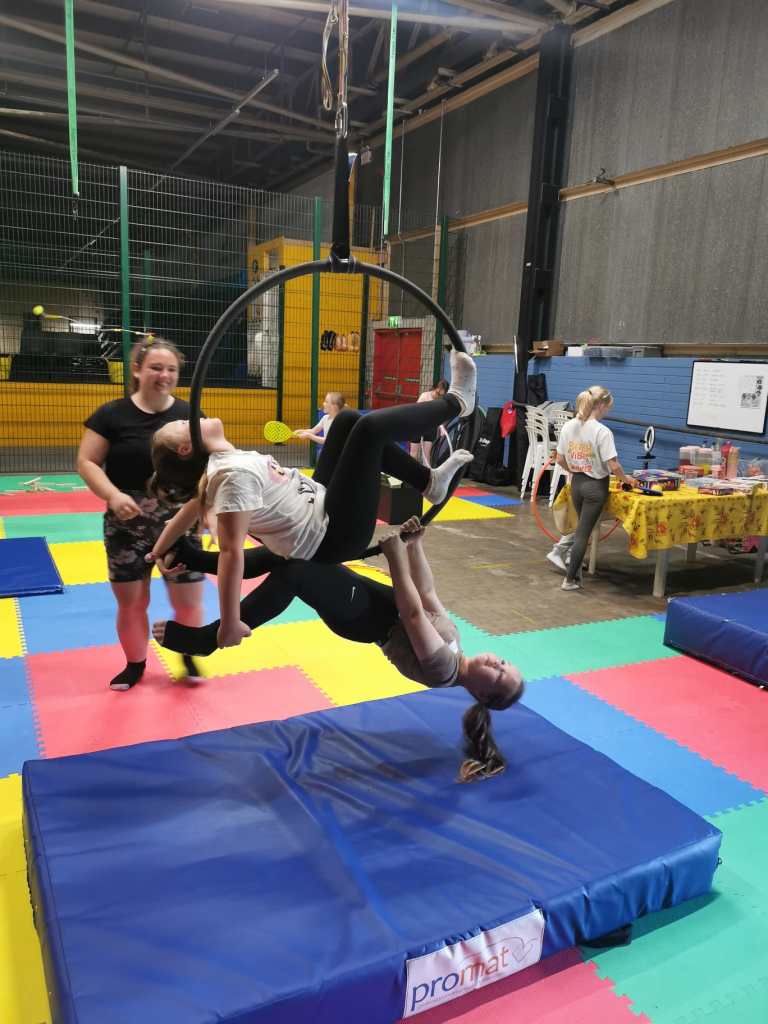 The camps include an exciting range of activities such as: Aerial Hoop, Aerial Sling, Hula Hoop & Ribbons, Zumba Dance, Partner Acro, Crafts, Games and more!